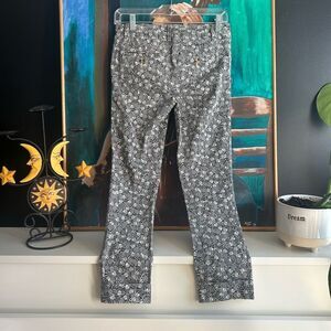 These Anthropologie jeans feature a striking gray and white leopard print on a flare and wide leg silhouette. Crafted from high-quality denim, they offer a unique blend of style and comfort. Perfect for making a bold fashion statement. Material has stretch.
