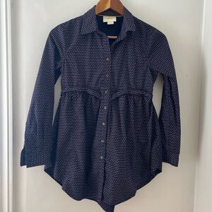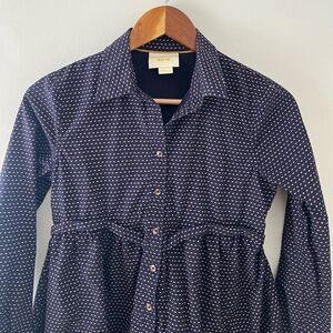 Anthropologie Maeve Blue Long Sleeve Polka Dot Cotton Long Blouse