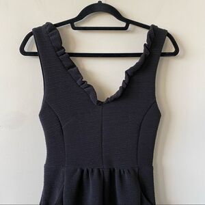 Anthropologie-Maeve Ruffled Ottoman Ribbed V Neck Black Dress (Size:XS)