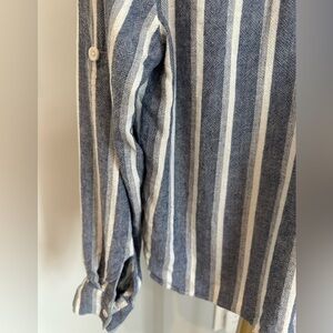 Anthropology Cloth & Stone Chic button-down with navy and white stripes. Soft fabric. Ideal for casual wear.