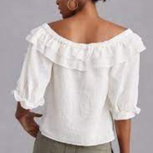 Anthropology Maeve ruffle bottom up top cream lined top size Small