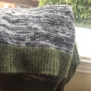 Anthropology SI-IAE Cashmere Sweater Top CutOut Soft ColorBlock Gray Black Green