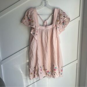 Anthropology Yvette Lounge Mini Dress Cotton embroidered Pale Pink size M