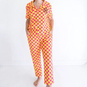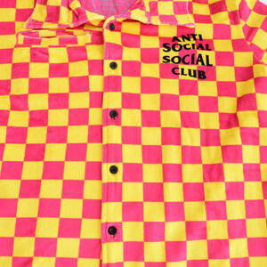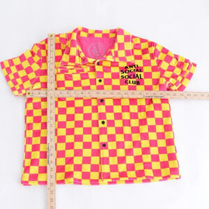 Anti Social Social Club Pink Yellow Checker Velour 2 Piece Pajamas 100% Cotton S