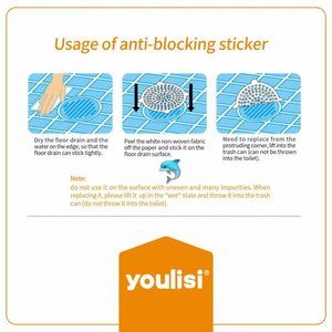 This anti-blocking sticker is very easy to use. Peel the white non-woven fabric off the paper and stick it on the floor drain surface. It can collect all the hairs after shower and you do not need to worry about drainage problem. There are 12 stickers in the package. Please feel free to bundle with any of my listings to save shipping cost!