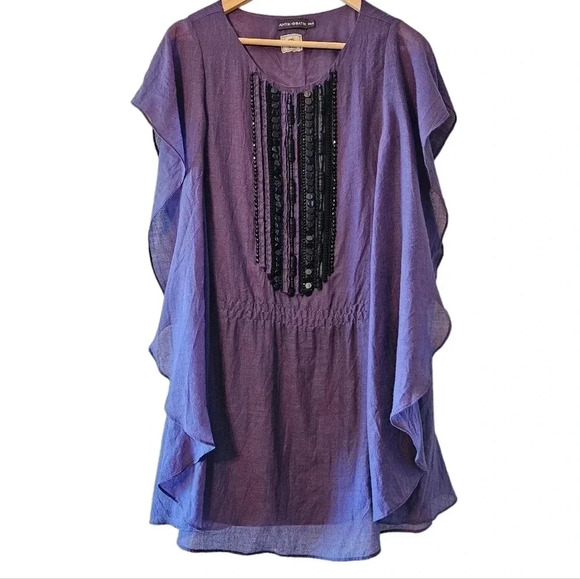 Antik Batik Embellished Draped Ruffle Wool Boho Mini Dress Purple Size Small.
