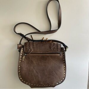 Antik Kraft Boho Fringe Tassel Crossbody Bag Purse Vegan Faux Leather Brown