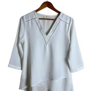 This elegant white asymmetrical top is perfect for any occasion. Its unique design adds a touch of sophistication to your wardrobe.