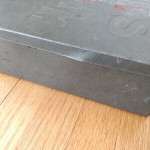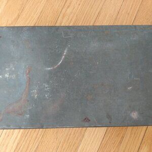 This is a rusty, shabby vintage metal box. It is old and looks old.