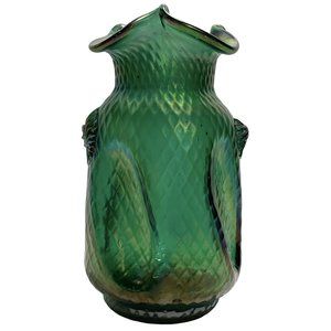 Antique 1900s Pallme-Konig Art Nouveau Green Iridescent Art Glass Vase Austrian