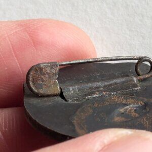 With a rusty safety pin soldered to the back to pin it.