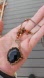 Antique 1930's Czech Glass Cabochon Pendant Necklace in Brass Setting. Vibrant brown glass gem is prong set in sturdy brass filigree with Art Nouveau lines and details. Glass and brass beaded chain.