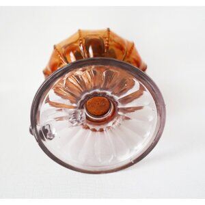 For your consideration is an antique amber oil finger lamp with the clear base having a purple tinge to it and has a tall chimney