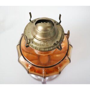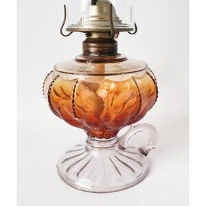 Antique Amber Glass Finger Oil Lamp Tall Chimney
