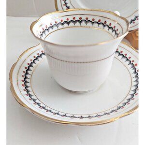 Antique Art Deco Hand Painted Tea Cup and Saucer with Bread Plate England