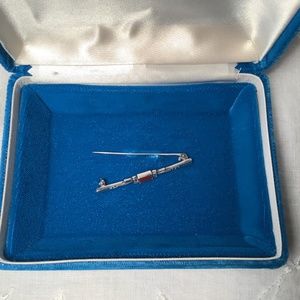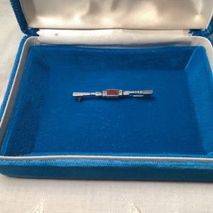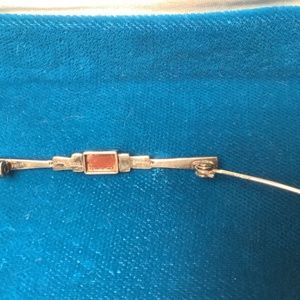 Delicate design in sterling silver. Art Deco. Red agate stone. Measures 2 inches wide by one eighth of an inch.