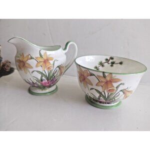 Antique Aynsley Art Deco Small Creamer & Sugar Bowl Set 1920's Janquil Daffodil