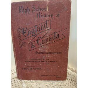 Antique High School History Book. 1891. High school history of England & Canada. Buckley & Robertson. 435 pages. A well worn hardcover book. Lots of writing on the last few blank pages. See images. Let me know if you'd like more. Reach out with any questions you may have. A fine piece of history!!