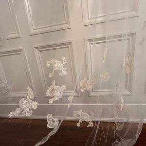 Antique Cathedral Veil made of Tulle and Lace with Blusher