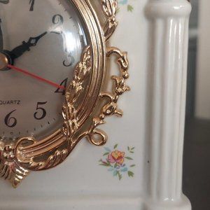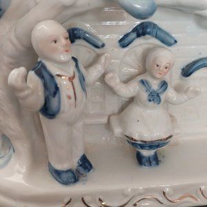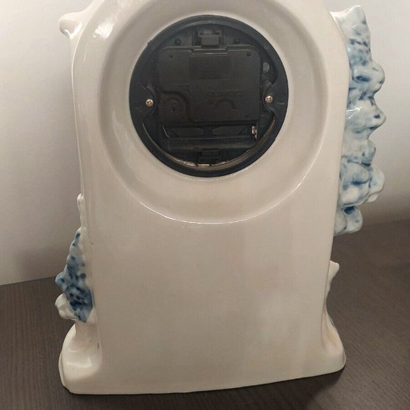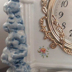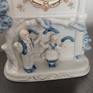 Antique Ceramic Delftware Mantel Clock Collectible With Ornate Frame and Figures