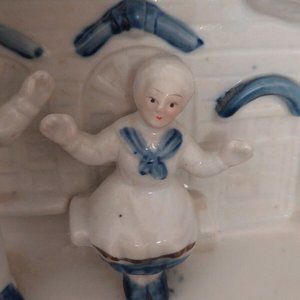 This antique ceramic Delftware mantel clock is a stunning collectible piece. The clock features ornate figures and a frame that adds to its Dutch Colonial style. Made of high-quality ceramic and porcelain, this clock is a unique decorative item that is sure to impress.
