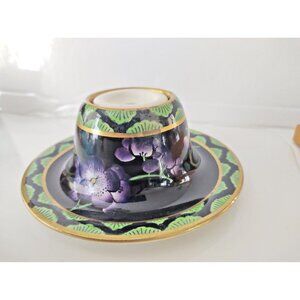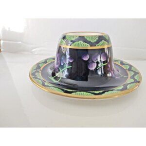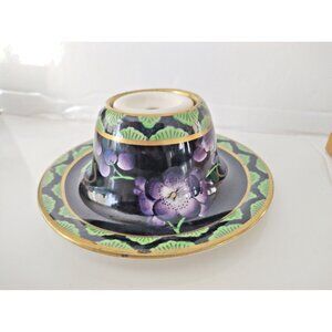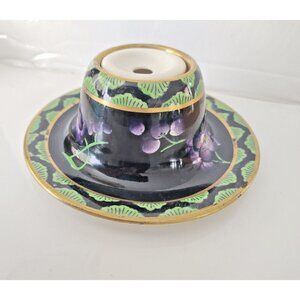 Antique Ceramic Inkwell Cetem Ware Purple florals gold gilded 1920's