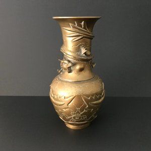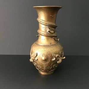 Antique Chinese Bronze Sculpted Dragon Figurines Vase