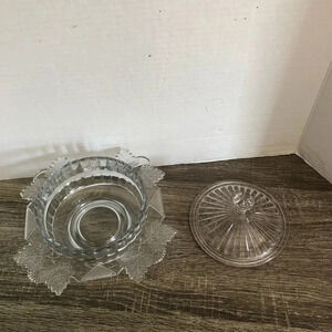 I believe this is a covered butter dish but you could use it for anything really. Lovely leaf design around the outside of the piece.