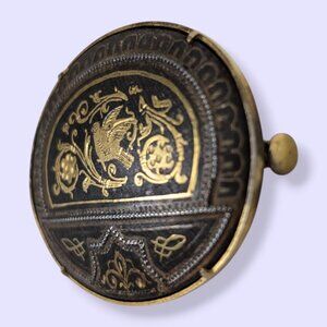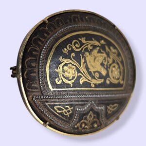 Antique Damascene Oval Brooch