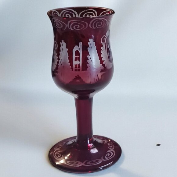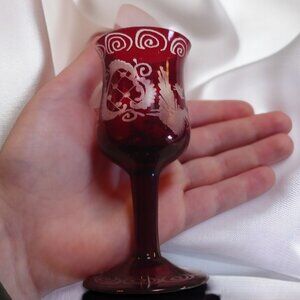 Antique Edwardian Ruby Red Etched Czech Cordial Glass – Vintage Barware