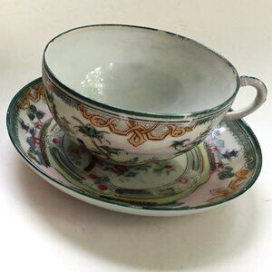 Antique Eggshell Thin Porcelain Hand-painted Geisha Japan 2 Cups with Saucers