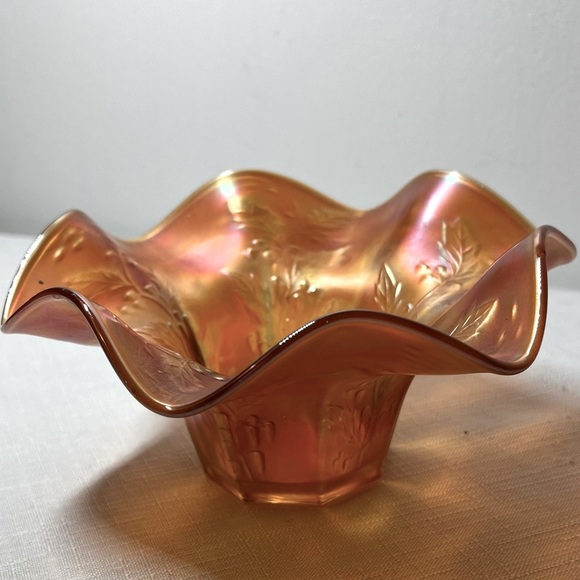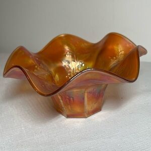 Antique Fenton Marigold Holly Carnival Glass Ruffled Candy Dish. Gorgeous!