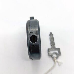 Vintage lock, circa 1900-1920, Cast iron round empire pancake lock with key. Works perfectly, with pop spring action opening. Measures approx 2.25" X 2.5" , See photos for condition