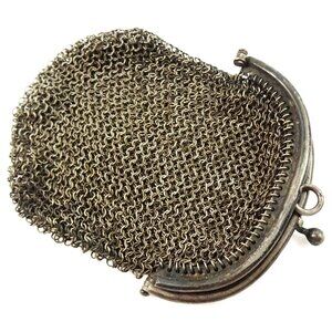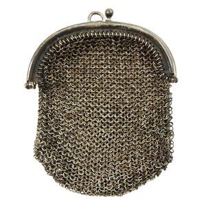 All silver mesh dual-compartment change purse. All parts tested as silver. French hallmarked (boar) on jumpring and also on one of the frames.