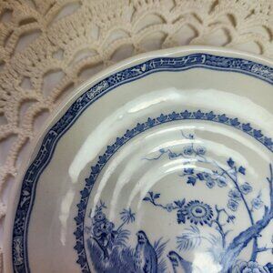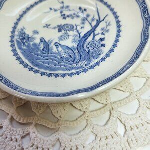 Furnivals Blue Quail pattern, white and blue with scalloped edges.