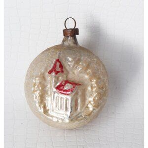 For your consideration is a vintage German mercury glass ornament with an embossed church scene, circa 1930's