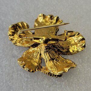 Antique Gold Hibiscus Brooch Medium Size Pin