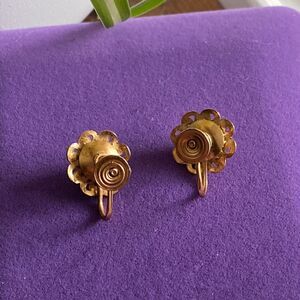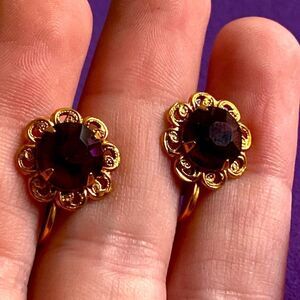 💛 Antique Gold Plated Purple Paste Screwback Earrings
