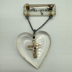 Antique Heart Pin with Name 'Mary Ann' Vintage Nurse Cross Pendant