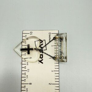 Silver inlayed cross and acrylic or resin heart and bar with etched name