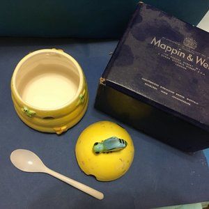 Antique British Honey Pot. 1920s. Excellent condition. Original china spoon has been replaced with plastic one otherwise all antique.