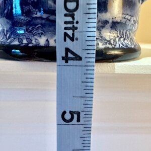 Antique (est 1910s) James Kent Fenton Ye Olde Foley Ware blue and white two handled mug, also known as a "tyg". Made in England. Has a few cracks and colour marks as shown in photos, sold as-is. Pastoral scenes on both front and back with gorgeous floral vine print on sides. Measures 4 inches diameter at opening, 4 inches tall. Cat friendly, nonsmoking home.