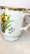 Handpainted gold scalloped trim and elegantly painted floral design. Pedestal footing with thin ceramic and delicate handle.