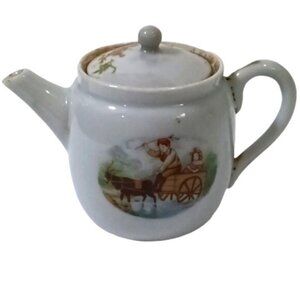 Antique Japanese Mini Teapot & Lidded 2-Handled Pot Goat Cart & Flowers Decor