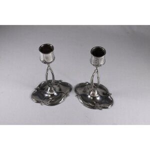 Antique Jugendstil WMF candlestick holders set of 2, vintage distressed Oxidized