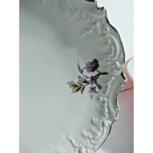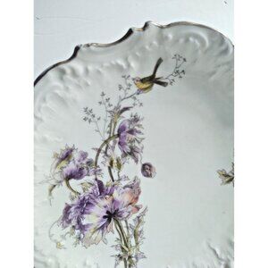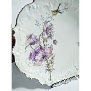 Antique Limoges France Hand Painted Cake/Dessert Serving Plate Molded Knurled Edge