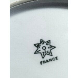 Printed seven-point star with the letters Limoges in the points with FRANCE below- all in green. This mark was used from 1891-1914. Based on the style of the decoration we date the plates to the first part of this period.