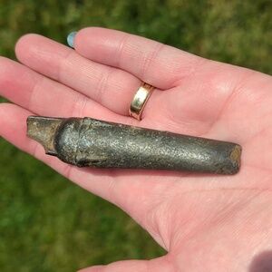 This circa 1884 Maple tree 'Spile' is for tapping Maple trees to collect the sap for making Maple Syrup. It has a cross at the back where they are hammered into the hole that would have been pre drilled in the tree. There is a hollow channel for the sap to run down.