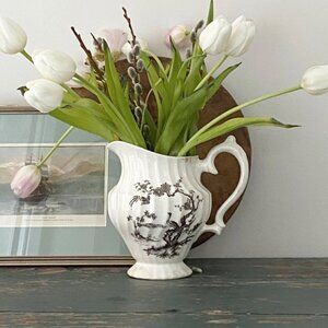 Darling early transferware pitcher ‘Exotic Birds’ Staffordshire, England