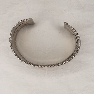 7 alternating bands of shiny genuine silver twisted wire & solid silver ingot joined at the ends to make a single Southwestern Navajo cuff bracelet.